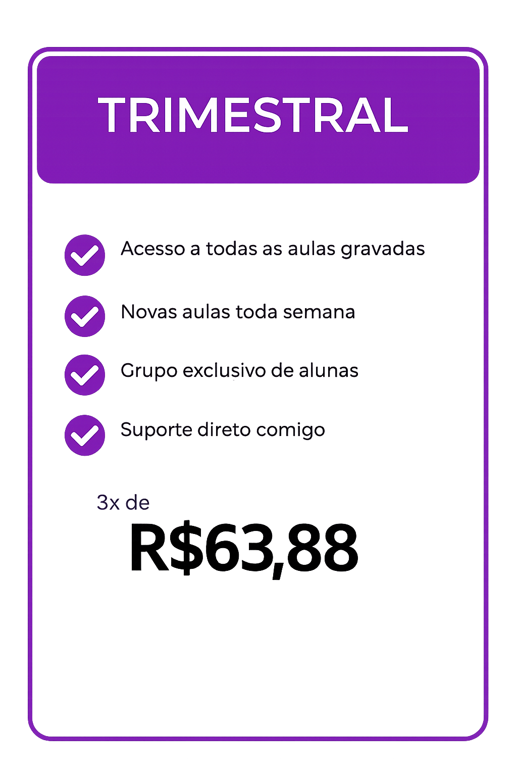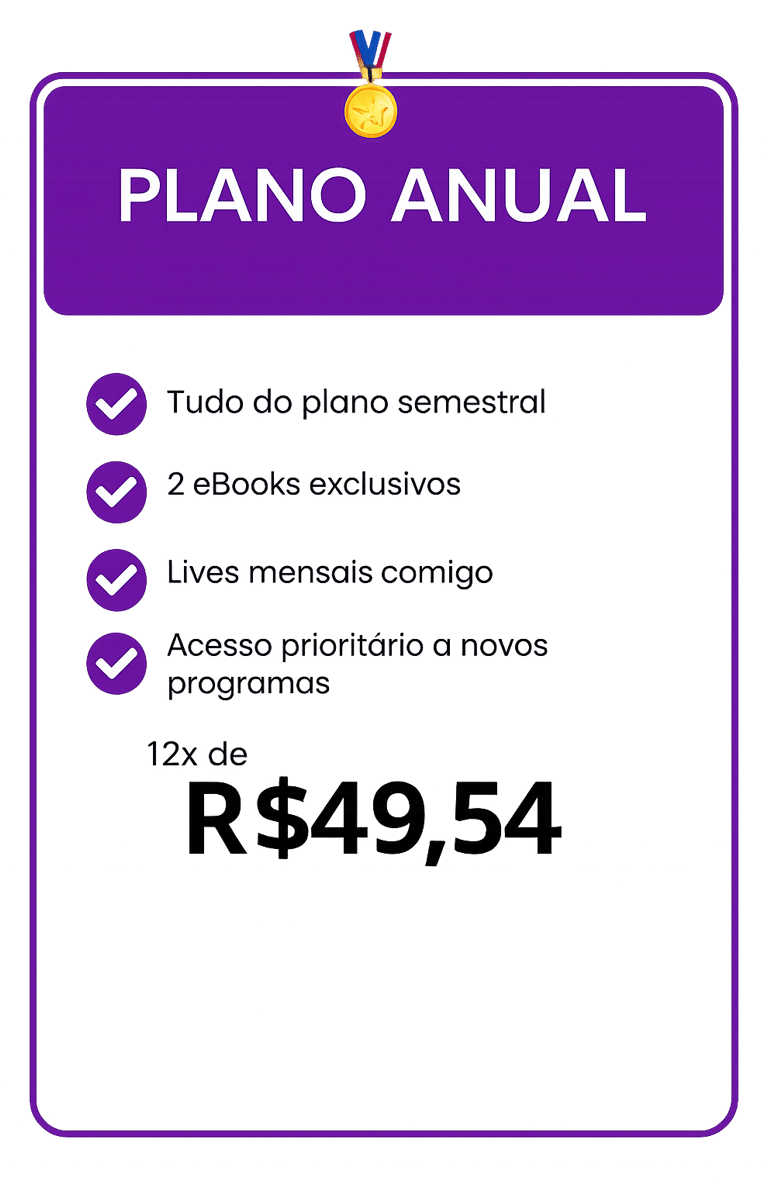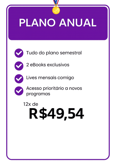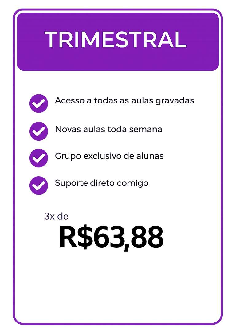 Você terá acesso a mais de 100 aulas gravadas e também aulas ao vivo comigo, para tirar dúvidas e ajustar sua postura.